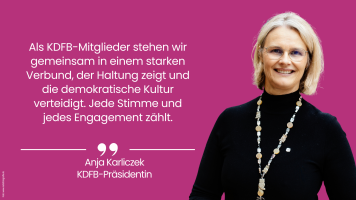 Der Bundesausschuss des Katholischen Deutschen Frauenbundes e.V. (KDFB) hat am vergangenen Wochenende einstimmig den Beschluss „Demokratie braucht Haltung – Aufstehen für unsere Freiheit“ verabschiedet. Mit diesem Beschluss bestärkt der Verband seine Mitglieder darin, Haltung zu zeigen und sich aktiv für eine demokratische Kultur einzusetzen.